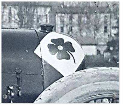 Sivocci won that race (it was the 1923 Targa Florio) and in the commemorative photos taken in the days following that victory, the Alfa-Romeo logo was inserted inside his QV, probably to 'make official' that from then on that would become the symbol that Alfa-Romeo would use on its racing cars. Here is the photo with the detail of the Alfa logo, inside the four-leaf clover.