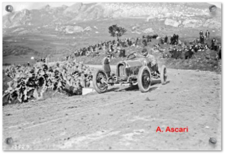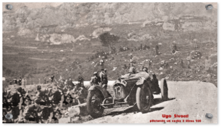 Ugo proposed to the whole team the use of that symbol and his companions, in order to distinguish themselves during the XIV TF, thought to adopt, each of them, a different background: Sivocci used a rhombus, Ascari a triangle and Campari a circle..
